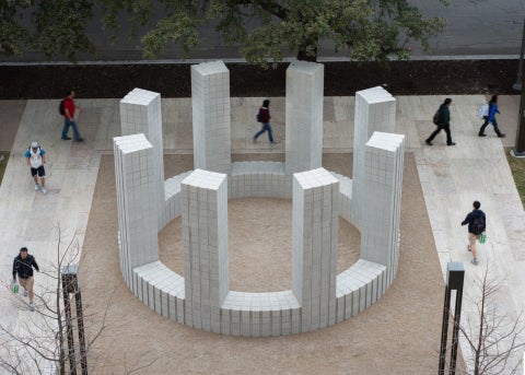 Within the Landmarks collection there is a common motif of the circle, notable in many prominent works. This month's docent-led public art tour will not only highlight this connecting thread, but also give visitors an opportunity to further explore the UT Austin campus. The tour begins at Mark di Suvero’s Clock Knot, and will include Sol LeWitts’s Circle with Towers, and Howardena Pindell's Autobiography: Circles.